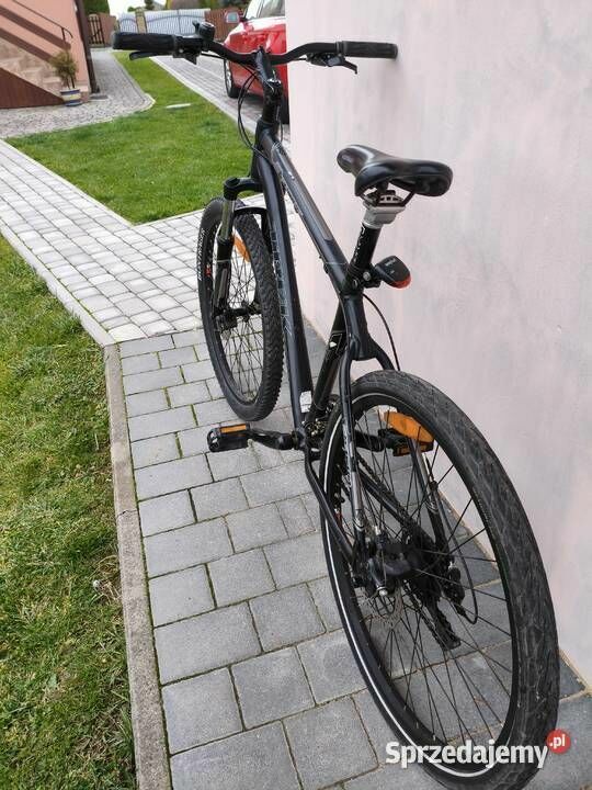 Sprzedam uniwersalny rower marki Trek z popularnej serii Dual Sport (DS). Ten model to świetne połączenie roweru miejskiego i terenowego, dzięki czemu doskonale sprawdza się zarówno w codziennych dojazdach, jak i podczas weekendowych wycieczek po parkach czy leśnych ścieżkach. Rower jest w bardzo dobrym stanie technicznym. Cały mechanizm działa płynnie i nie wymaga żadnych napraw – jest w pełni gotowy do jazdy. Sercem roweru jest wytrzymała aluminiowa rama oraz przedni amortyzator, który skutecznie poprawia komfort, pochłaniając drgania na nierównym podłożu. Za niezawodność odpowiada kompletny osprzęt Shimano. Rower posiada szeroki zakres biegów w konfiguracji 3 z przodu i 7 lub 8 z tyłu, co daje łącznie 21 lub 24 przełożenia. Taka ilość biegów sprawia, że podjazdy są lekkie, a jazda po prostej drodze jest szybka i dynamiczna. Jeśli chodzi o hamulce, rower ma nowoczesny system mieszany. Z przodu zamontowany jest hamulec tarczowy mechaniczny, który zapewnia dużą siłę hamowania i bezpieczeństwo. Z tyłu zastosowano prosty i niezawodny hamulec typu V-brake. Ważna informacja: Rower był używany aktywnie i w związku z tym posiada delikatne rysy oraz drobne otarcia na ramie. Są to normalne ślady użytkowania, które w żaden sposób nie wpływają na bezpieczeństwo ani stan techniczny roweru. Wizualne ślady zostały już uwzględnione w atrakcyjnej cenie. To solidny, markowy sprzęt, który posłuży nowemu właścicielowi przez wiele lat.Sprawdź zainteresowanie tym ogłoszeniem